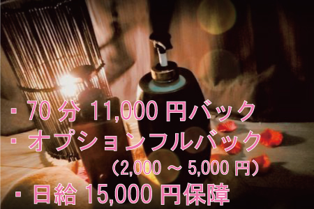 70分11,000円+オプションフルバック2,000~5,000円の手取り&日給保障15,000円♪